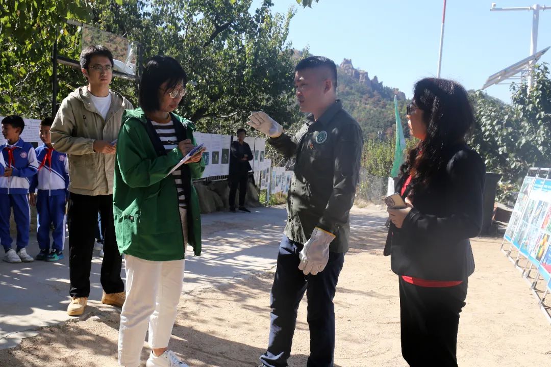 在崂山西麓的半山腰处,采访团实地探访青岛市城阳区野生动植物保护协会基地。城阳区源头小学的同学们正在开展生态文明科普活动,采访团一行参与其中,详细问询,深入了解城阳区野生动植物保护情况,并对致力于野生动植物保护公益事业20余年的“中国好人”徐立强进行人物专访,了解其带领5000余名志愿者开展“为鸟安家”“志愿林长”等文明实践志愿服务活动的动人事迹。