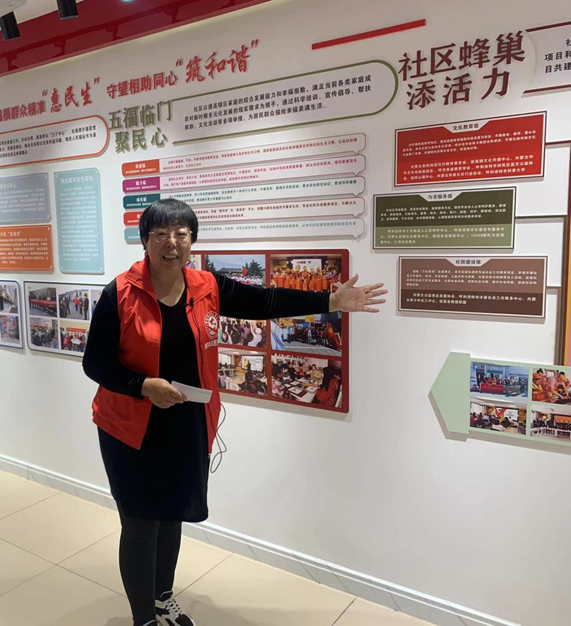 10月19日,呼和浩特市回民区三顺店社区党委书记、居委会主任李一芝在介绍社区工作。新华网 张倩 摄