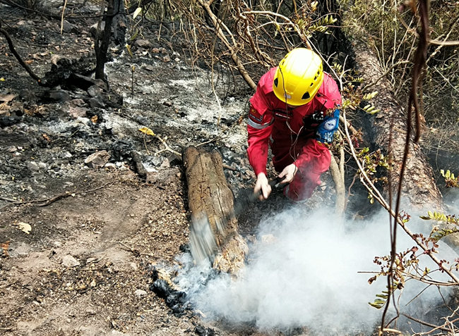 赵忠在西昌森林火灾现场开展救援。渠县爱心志愿者协会 供图