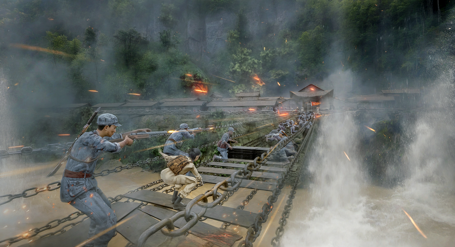 大渡河上孤舟勇,踩波踏浪杀敌寇。走进雅安市石棉县安顺场镇的中国工农红军强渡大渡河纪念馆,一处声光电布景瞬间将参观者拉回1935年的激战现场:嘹亮的冲锋号划破长空,红军将士的枪声密集作响,17名勇士乘坐小船在惊涛骇浪中向对岸挺进,当地船工奋力摇桨的身影清晰可见。“仿佛能感受到当时的紧张与壮烈。”来自贵州的游客李先生驻足良久,由衷感慨。